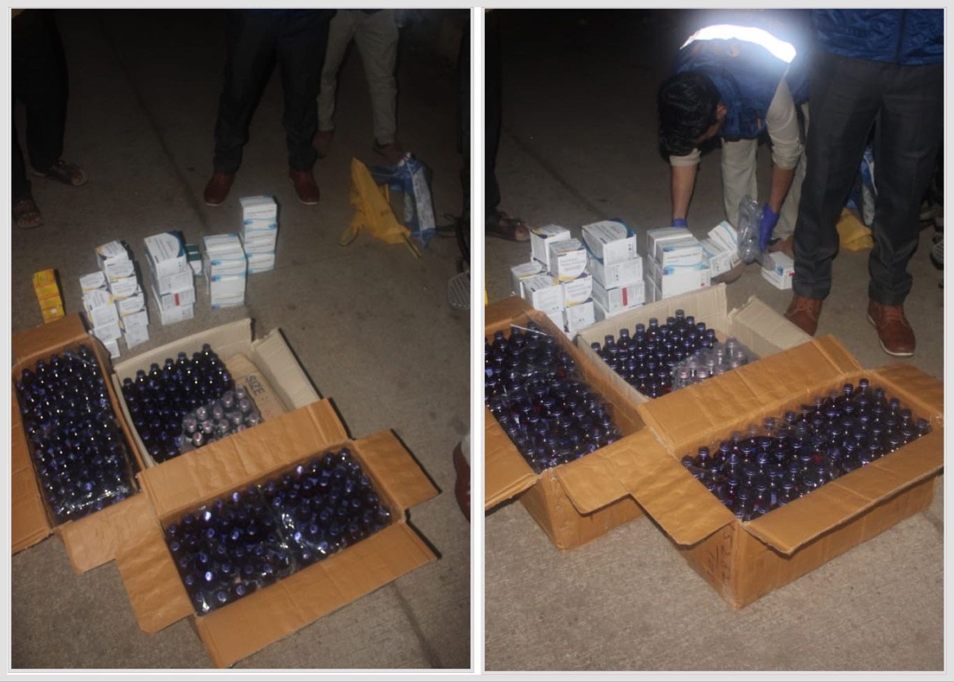 ಆರೋಪಿಗಳಿಂದ 100 ಎಂ.ಎಲ್ ನ ಒಟ್ಟು 340 Broncof-C cough Syrup ಬಾಟಲ್ಗಳು, 100 ಎಂ.ಎಲ್ ನ 15 EDEX-CT cough Syrup ಬಾಟಲ್ಗಳು, 20 ಸಣ್ಣ ಬಾಕ್ಸ್ ಗಳಲ್ಲಿರುವ aceclofenac Paracetamol & serratiopeptidase tablets ಗಳನ್ನು ವಶಕ್ಕೆ ಪಡೆಯಲಾಗಿದೆ. ಇವರು ಬಳಸುತ್ತಿದ್ದ ಒಂದು ಹೊಂಡಾ ಆಕ್ಟಿವಾ ಬೈಕು ಹಾಗೂ 1200 ನಗದು ವಶಕ್ಕೆ ತೆಗೆಯಲಾಗಿದೆ. ಬಸವನಗರ ಪೊಲೀಸ್ ಠಾಣೆಯಲ್ಲಿ ಪ್ರಕರಣ ದಾಖಲಾಗಿದೆ.