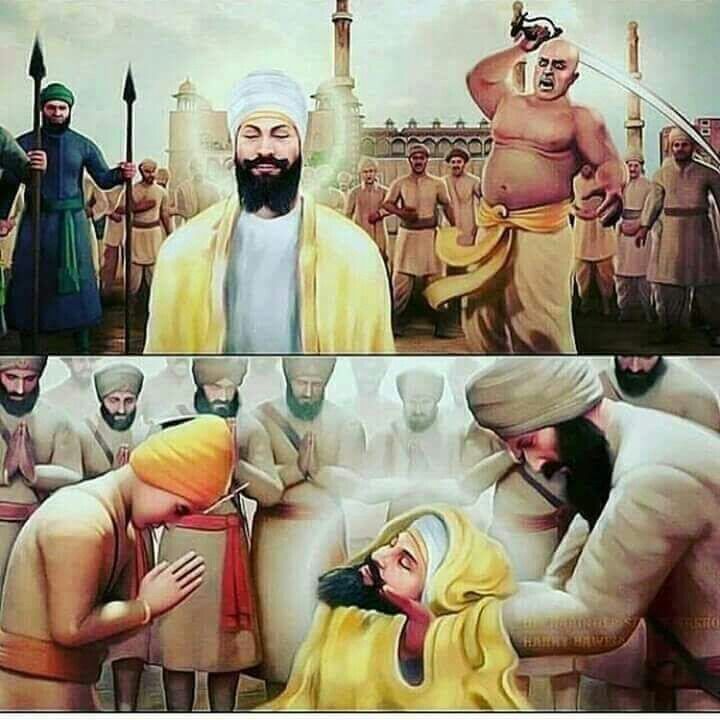 ಇದರಿಂದ ಇಕ್ಕಟ್ಟಿಗೆ ಸಿಲುಕಿದ ಔರಂಗಜೇಬ, ಗುರು ತೇಜ್ ಬಹಾದ್ದೂರ್ ಸಾಹೇಬ್ ರನ್ನು ಕರೆದು ಮುಸ್ಲಿಂ ಆಗಿ ಧರ್ಮ ಪರಿವರ್ತನೆಯಾಗಲು ಒತ್ತಡ ಹೇರಿದ. ಆದರೆ ಗುರುಗಳು ಯಾವುದೇ ಕಾರಣಕ್ಕೂ ಧರ್ಮ ಪರಿವರ್ತನೆಗೆ ಒಪ್ಪಲಿಲ್ಲ. ಧರ್ಮ ಮಾನವನ ಅಧಿಕಾರ, ಯಾರನ್ನೂ ಖಡ್ಗ ತೋರಿಸಿ ಮತಾಂತರ ಮಾಡುವುದು ತರವಲ್ಲ ಎಂದು ಔರಂಗಜೇಬನಿಗೆ ಉಪದೇಶ ಮಾಡಿದರು. ಆದರೆ ಗುರುಗಳ ಮಾತನ್ನು ಒಪ್ಪದ ಔರಂಗಜೇಬ ಬಹಾದ್ದೂರ್ ಜೀ ಅವರನ್ನೇ ಮುಗಿಸಲು ನಿರ್ಧರಿಸಿ ನಿರ್ದಯವಾಗಿ ಕೊಲ್ಲುವಂತೆ ಆಜ್ಞಾಪಿಸಿದ. ದಿಲ್ಲಿಯ ಚಾಂದನಿ ಚೌಕ್ ನಲ್ಲಿ ಸಾರ್ವಜನಿಕವಾಗಿ ಗುರು ತೇಜ್ ಬಹದ್ದೂರ್ ಅವರನ್ನು ಸಾರ್ವಜನಿಕವಾಗಿ ಶಿರಚ್ಛೇದನ ಮಾಡಿ ಕೊಲ್ಲಲಾಯಿತು. ಗುರುಗಳ ಬಲಿದಾನ ಮೊಘಲ್ ಸಾಮ್ರಾಜ್ಯದ ವಿರುದ್ಧ ಸಿಬ್ಬರನ್ನು ಒಗ್ಗೂಡಿಸಿತು.