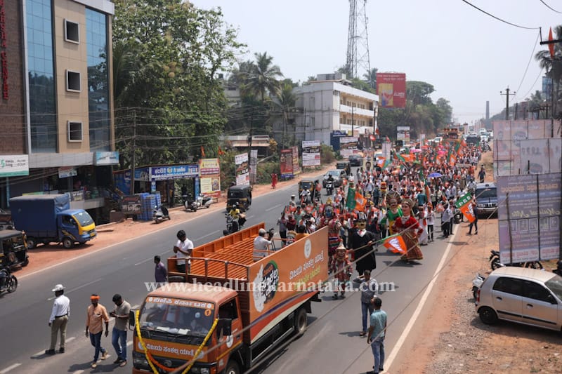 ರಾಜ್ಯದಾದ್ಯಂತ ಬಿಜೆಪಿ ಕೈಗೊಂಡಿರುವ ವಿಜಯ ಸಂಕಲ್ಪ ಯಾತ್ರೆ ಸೋಮವಾರ ಮಂಗಳೂರು ವಿಧಾನಸಭಾ ಕ್ಷೇತ್ರವನ್ನು ತಲುಪಿತು. ಕುತ್ತಾರು ಶ್ರೀ ರಾಜರಾಜೇಶ್ವರಿ ಸಿದ್ಧಿವಿನಾಯಕ ದೇವಸ್ಥಾನದಿಂದ ತೊಕ್ಕೊಟ್ಟು ಕೇಂದ್ರ ಬಸ್ಸು ನಿಲ್ದಾಣದ ಮೈದಾನದ ವರೆಗೆ ನಡೆದ ವಿಜಯ ಸಂಕಲ್ಪ ಯಾತ್ರೆಯಲ್ಲಿ ಸಾವಿರಾರು ಮಂದಿ ಕಾರ್ಯಕರ್ತರು ಪಾಲ್ಗೊಂಡರು. ಈ ವೇಳೆ ಮಾತನಾಡಿದ ಈಶ್ವರಪ್ಪ ಹಿಂದುಗಳು, ಮುಸಲ್ಮಾನರು, ಕ್ರೈಸ್ತರು ಎಲ್ಲರು ಜೊತೆಗೂಡಿ ಪರಕೀಯರ ಜೊತೆ ಹೋರಾಡಿ ದೇಶಕ್ಕೆ ಸ್ವಾತಂತ್ರ್ಯ ತಂದರು. ಸ್ವಾತಂತ್ರ್ಯ ನಂತರ ಅಧಿಕಾರ ನಡೆಸಿದ ಕಾಂಗ್ರೆಸ್ ಧರ್ಮಗಳನ್ನ ಒಡೆಯುವ ಕಾರ್ಯ ನಡೆಸಿದೆ. ದೇಶದಲ್ಲಿ ಹಿಂದು, ಮುಸ್ಲಿಂ, ಕ್ರೈಸ್ತರು ಸೌಹಾರ್ದದಿಂದ ಬಾಳುವ ಕಲ್ಪನೆ ಬಿಜೆಪಿಯದ್ದು. ಆದರೆ ಎಸ್ ಡಿಪಿಐ ಮತ್ತು ಕಾಂಗ್ರೆಸ್ ಜನರ ನಡುವೆ ಕೋಮು ಭಾವನೆ ಕೆರಳಿಸುವ ಕಾರ್ಯ ಮಾಡುತ್ತಿದೆ ಎಂದರು.