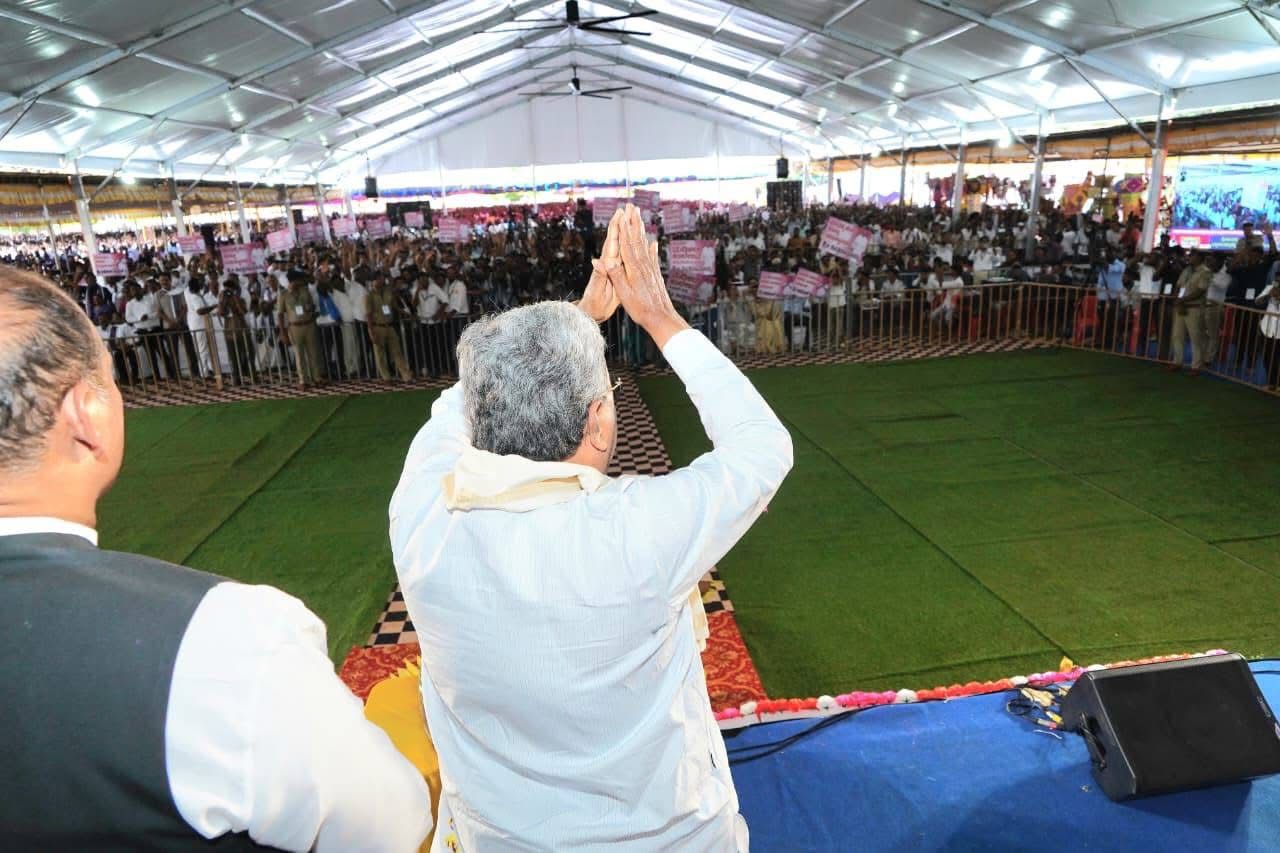 During the Ashoka Janamana event in Puttur, Chief Minister Siddaramaiah lauded MLA Ashok Rai for his large-scale charitable initiatives, including distributing clothes to one lakh people this Diwali through Rai Associates.