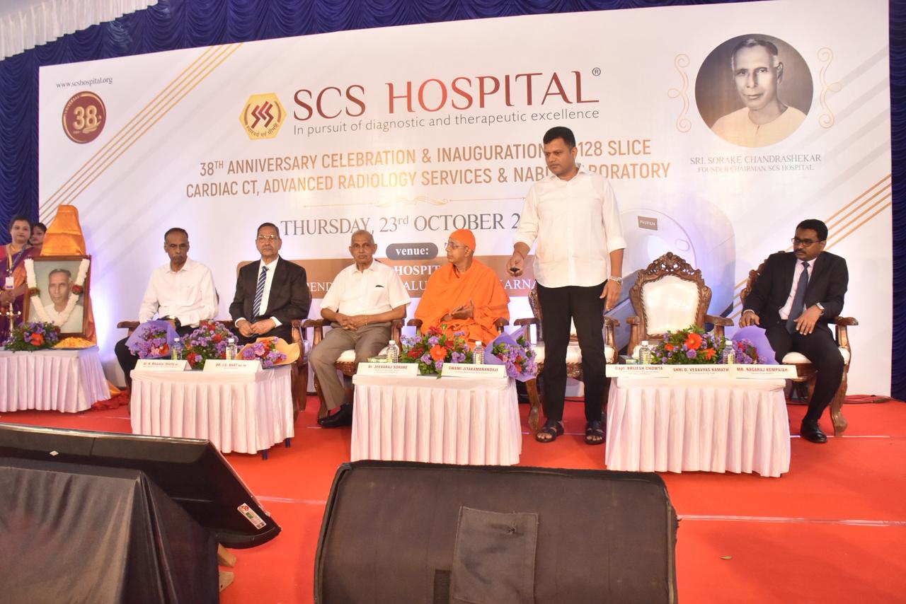 Mangaluru’s SCS Hospital in Balmatta celebrated its 38th anniversary with the inauguration of a state-of-the-art 128-slice Cardiac CT Scanner from Japan’s Fujifilm, along with an advanced radiology department and NABL-accredited laboratory. The ceremony was inaugurated by Dakshina Kannada MP Captain Brijesh Chowta, who praised the hospital’s efforts in advancing diagnostic technology for early disease detection and effective treatment.