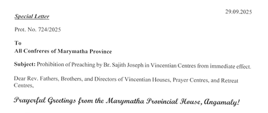 The Kerala Catholic Vincentian Congregation Church has issued an order prohibiting Kerala-based preacher Brother Sajith Joseph from conducting prayers or delivering teachings in any church or prayer centre in Kerala or Karnataka. Brother Sajith, who once founded his own Protestant church before rejoining Catholicism in 2019, had been active for the past five years in Mangalore and Belthangady, drawing thousands to his monthly prayer meetings. The Vincentian Church administration has issued a statement on the matter, declaring that Sajith Joseph has been immediately prohibited from conducting prayers and preaching. “We have taken seriously the complaints submitted by several community members and leaders of the prayer centre, along with video clips,” the statement said.