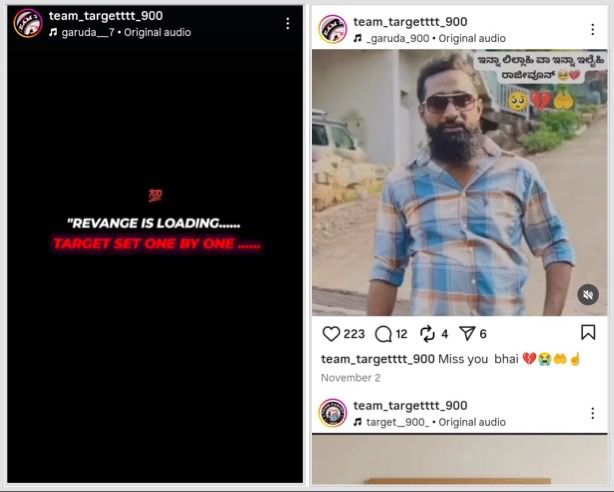 Revange Is Loading , Target Set One By One ಎಂಬ ಸಂದೇಶ ಇರುವ ಮತ್ತೊಂದು ಪೋಸ್ಟ್ ಮಾಡಿದ್ದು, ಕೈಯಲ್ಲಿ ತಲವಾರು ಮತ್ತು ಪಿಸ್ತೂಲ್ ಹಿಡಿದು ಮುಖ ಮರೆ ಮಾಚಿರುವ ರೀಲ್ಸ್ ಕೂಡ ಕಾಣಿಸಿಕೊಂಡಿದೆ. ಇತ್ತೀಚೆಗೆ ಕೇರಳದಲ್ಲಿ ಹತ್ಯೆಯಾದ ರೌಡಿಶೀಟರ್ ನೌಫಾಲ್ ಸಾವಿಗೂ ಪ್ರತೀಕಾರ ತೀರಿಸಿಕೊಳ್ಳುವ ಎಚ್ಚರಿಕೆ ನೀಡಲಾಗಿದೆ. ಹಲವು ಪ್ರಕರಣಗಳ ಆರೋಪಿ, ಕೋಕಾ ಏಕ್ಟ್ ನಡಿ ಬಂಧಿಸಲ್ಪಟ್ಟ ಬಜರಂಗದಳ ಕಾರ್ಯಕರ್ತ ಭರತ್ ಕುಮ್ಡೇಲ್ ಸದ್ಯ ಮಂಗಳೂರು ಜೈಲಿನಲ್ಲಿದ್ದಾನೆ.