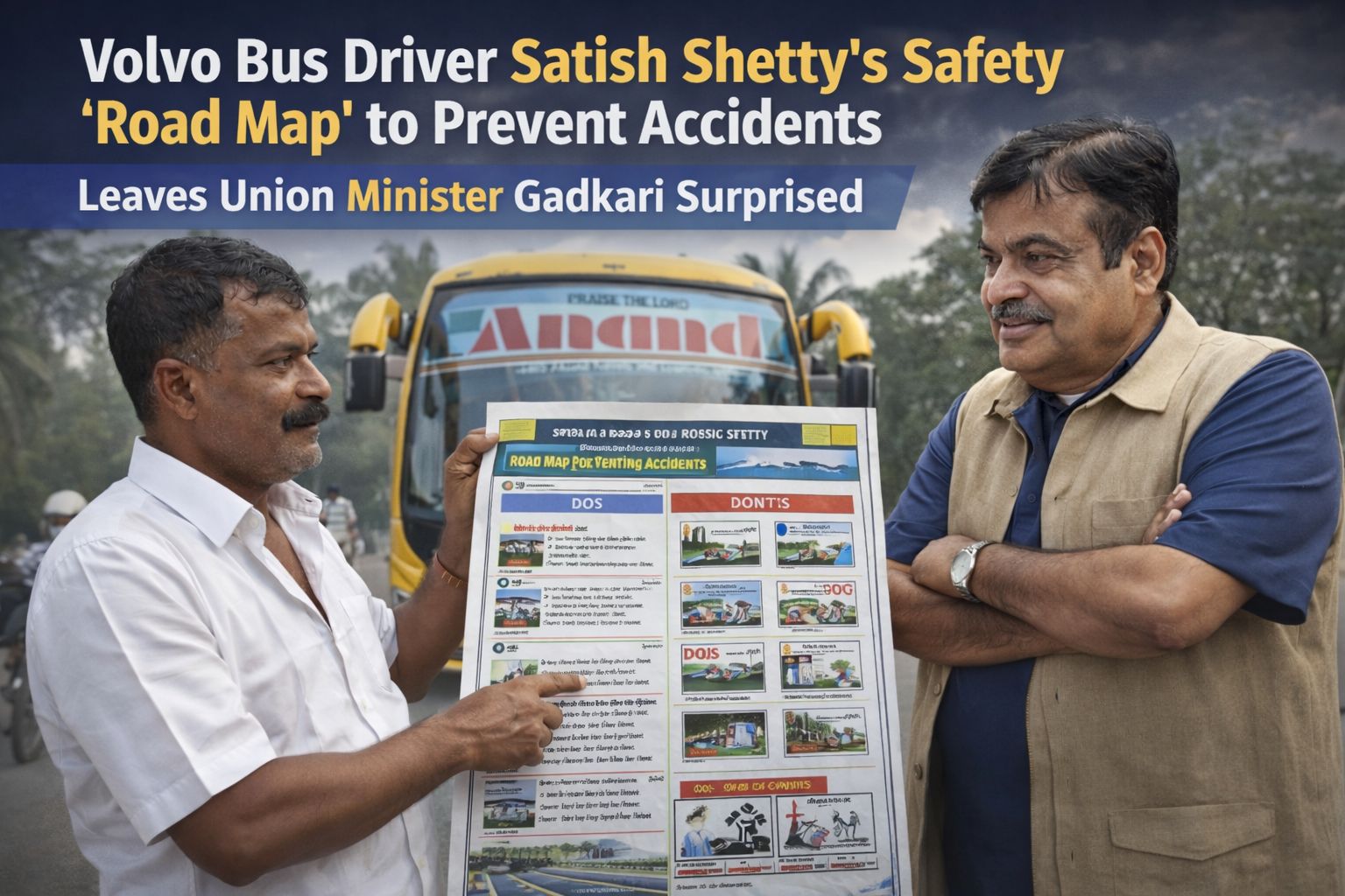 Mangaluru-based Anand travles Volvo driver Satish Shetty, with 25 years of experience, has proposed a detailed roadmap to reduce road accidents in India. Meeting Union Transport Minister Nitin Gadkari, he suggested stricter licensing systems, independent driving tests, private training agencies, and deploying ex-Agniveers for highway safety.