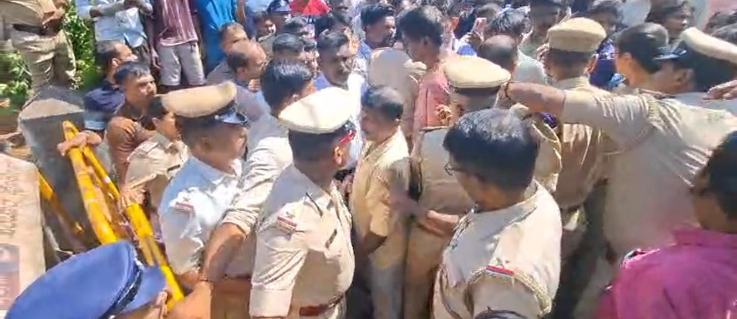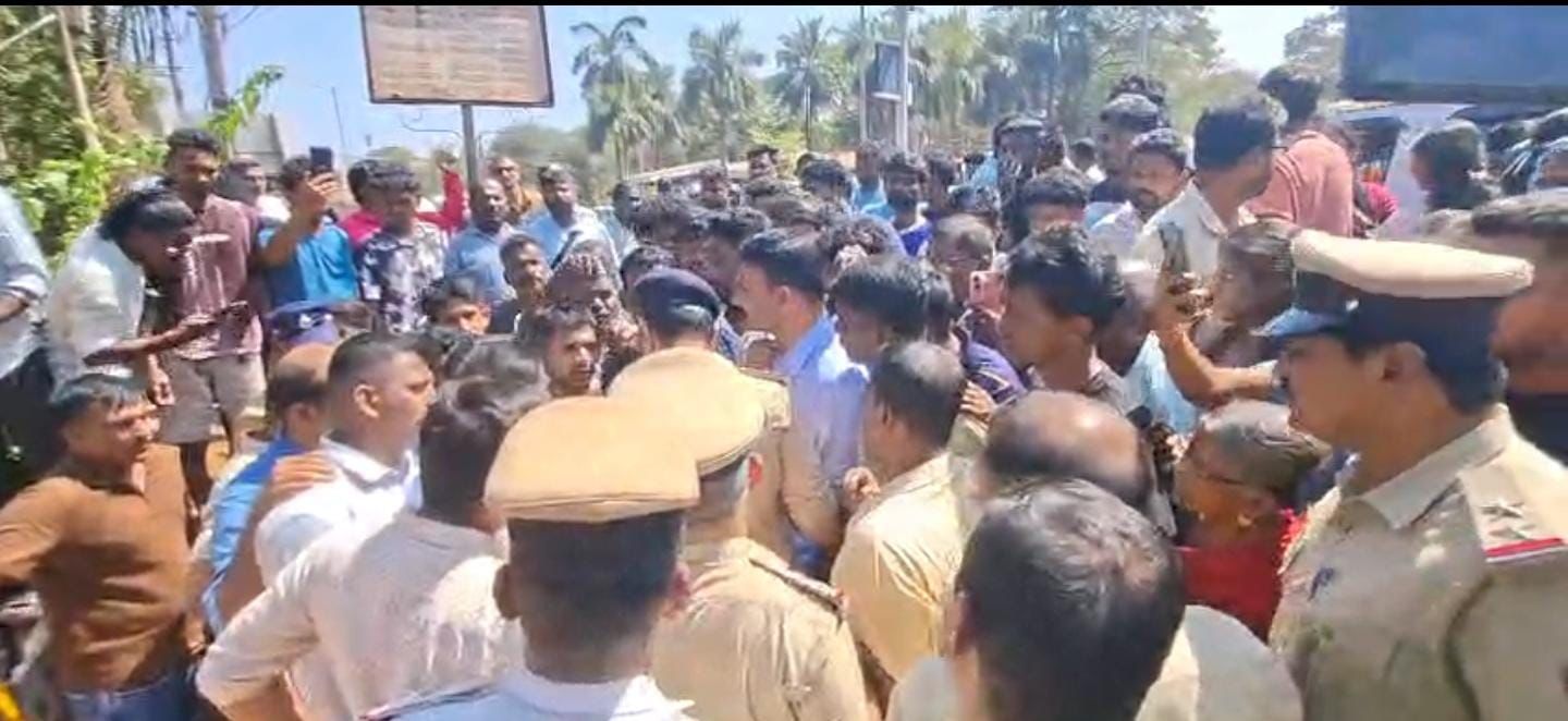 Tension prevailed outside Kadri Police Station after relatives and local residents staged a protest by placing the body of 26-year-old Deepthi, who died in a bus accident at Nantoor.  The incident occurred around 7:45 pm when Deepthi was travelling on a scooter with her fiancé Kishore. A private bus allegedly hit the scooter, causing her to fall onto the road, after which the bus ran over her.