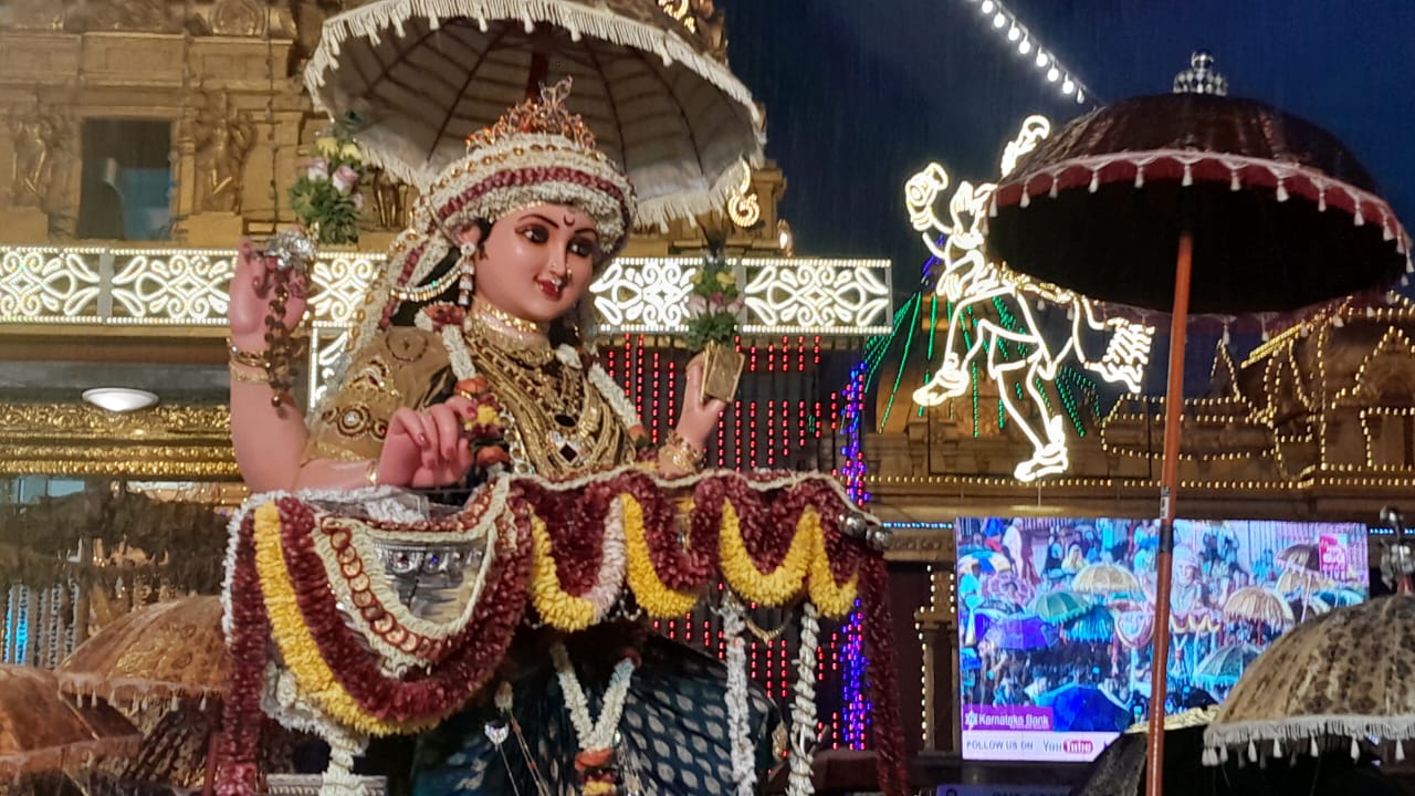 ಮಂಗಳೂರು ದಸರಾ ಎಂದೇ ಖ್ಯಾತಿ ಪಡೆದಿರುವ ಕುದ್ರೋಳಿ ಗೋಕರ್ಣನಾಥ ಕ್ಷೇತ್ರದಲ್ಲಿ 11 ದಿನಗಳಿಂದ ಪೂಜೆಗೊಂಡ ಶಾರದೆ ಮತ್ತು ನವದುರ್ಗೆಯರ ಮೃಣ್ಮಯ ಮೂರ್ತಿಗಳ ಶೋಭಾಯಾತ್ರೆ ಅದ್ದೂರಿಯಾಗಿ ನಡೆಯಿತು. ಸಂಜೆ ವೇಳೆಗೆ ಶಾರದೆ ಹೊರಡುವ ಸಮಯಕ್ಕೆ ಮಳೆಯ ಸಿಂಚನವಾದರೂ ಆಬಳಿಕ ಮಳೆ ಬಿಡುವು ನೀಡಿತ್ತು. ಇದರಿಂದಾಗಿ ಲಕ್ಷಾಂತರ ಜನರು ಉತ್ಸವಕ್ಕೆ ಸಾಕ್ಷಿಯಾದರು. ಫೋಟೊ ಜಲಕ್ ಇಲ್ಲಿದೆ.