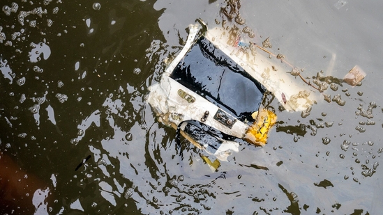 Photos reveal the aftermath of the Hudson River helicopter crash that killed six, including Siemens' Spanish CEO Agustin Escobar and family.