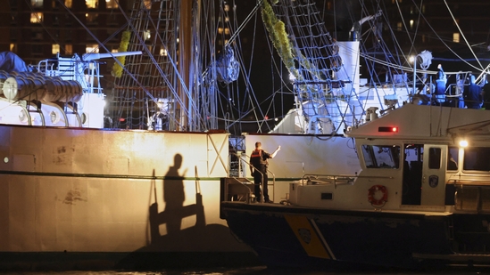 A Mexican naval tall ship crashed into the Brooklyn Bridge late Saturday, killing two crew members and injuring several others.