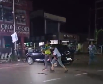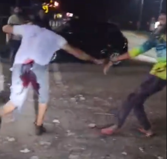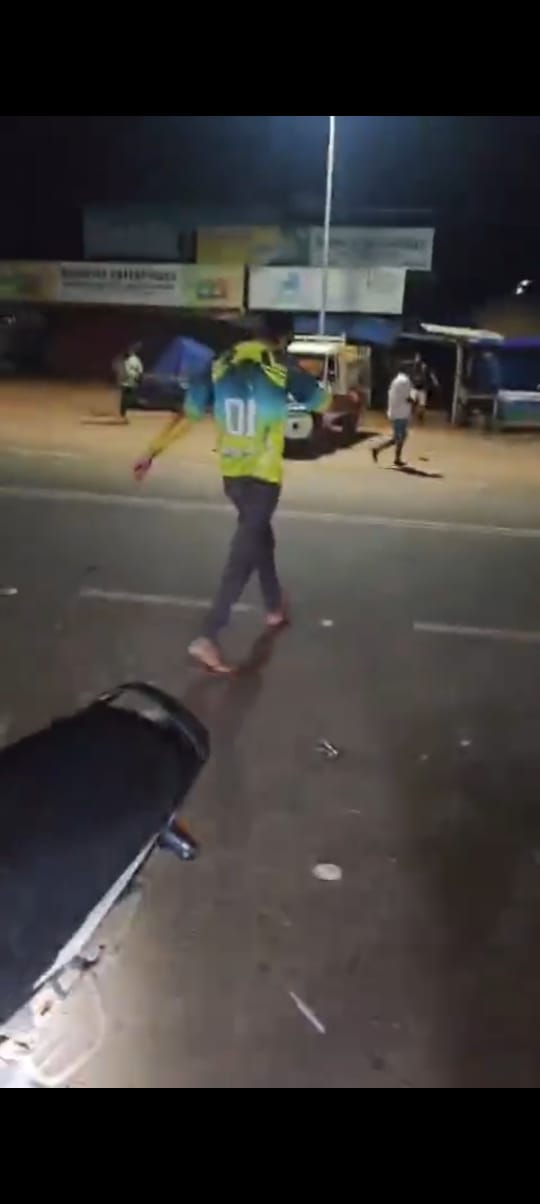 A violent gang clash broke out late Sunday night in Seethangoli, under Kumbla Police Station limits of Kasaragod district. Two rival groups from Badiyadka and Seethangoli reportedly fought over a financial dispute, leading to a brutal street brawl involving knives. During the fight, a youth named Anil Kumar from Badiyadka was stabbed in the neck, and the knife remained lodged in the wound. The shocking visuals of the incident have gone viral on social media.