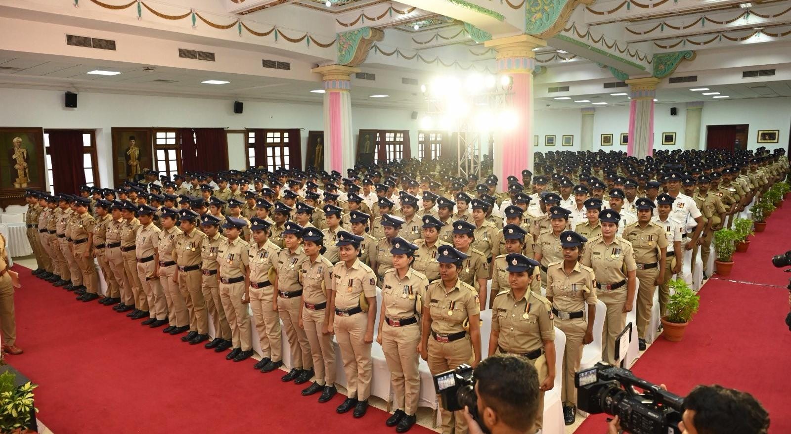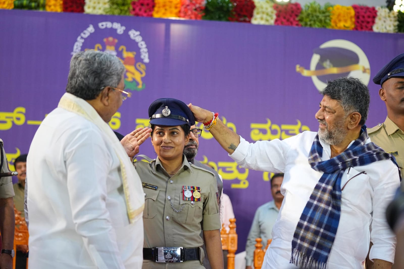 The slouch-style caps introduced during the tenure of Devaraj Urs have now been replaced, and new blue caps, modeled after those worn by Telangana police, have been distributed to Karnataka police personnel.