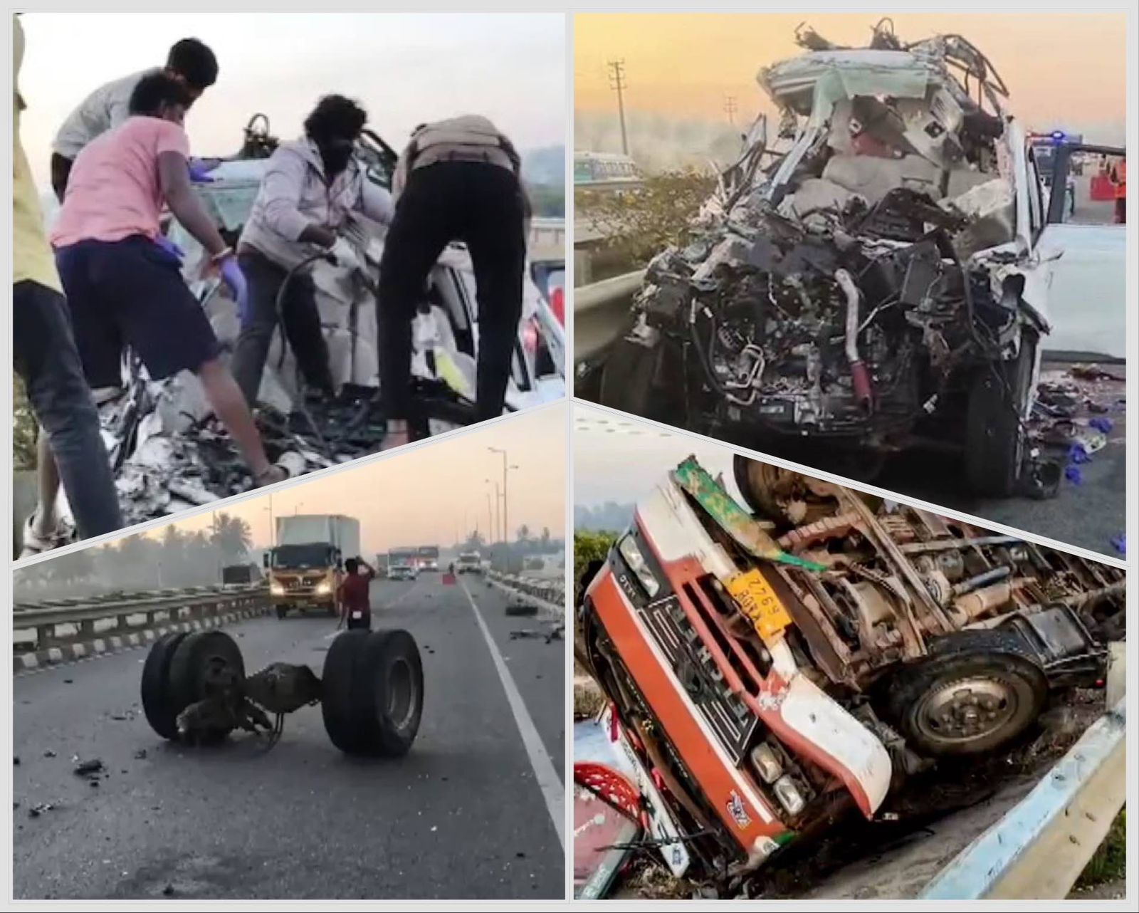 ಬೆಂಗಳೂರು, ಫೆ.13: ಬೆಂಗಳೂರು ಗ್ರಾಮಾಂತರ ಜಿಲ್ಲೆಯ ಹೊಸಕೋಟೆ ತಾಲೂಕು ವ್ಯಾಪ್ತಿಯ ಎಂ ಸತ್ಯವಾರ ಗ್ರಾಮದ ಸಮೀಪ ಇಂದು ನಸುಕಿನ ಜಾವ ಸಂಭವಿಸಿದ ಭೀಕರ ಸರಣಿ ರಸ್ತೆ ಅಪಘಾತ ಇಡೀ ರಾಜ್ಯವನ್ನೇ ಬೆಚ್ಚಿಬೀಳಿಸಿದೆ.