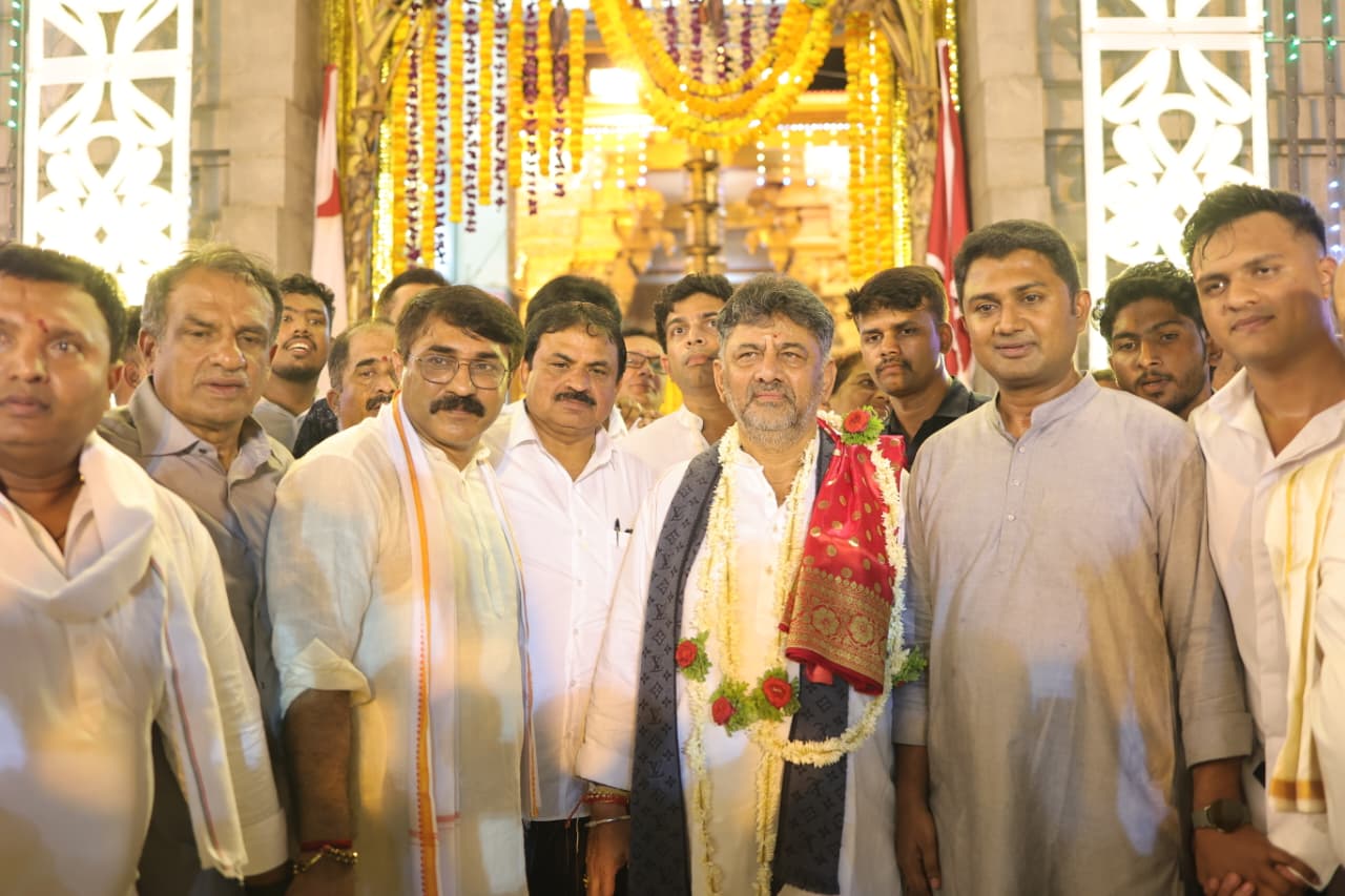 On the final evening of the Mangaluru Dasara festivities, Karnataka Deputy Chief Minister D.K. Shivakumar paid a late-night visit to the historic Kudroli Gokarnanatheshwara Temple on Wednesday.