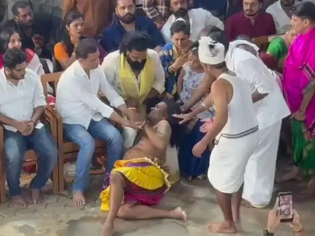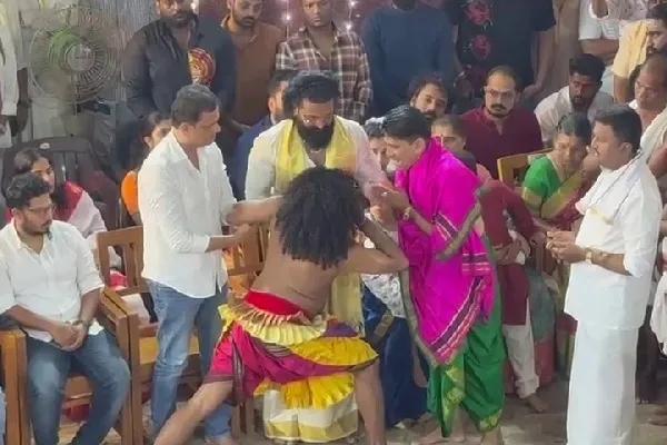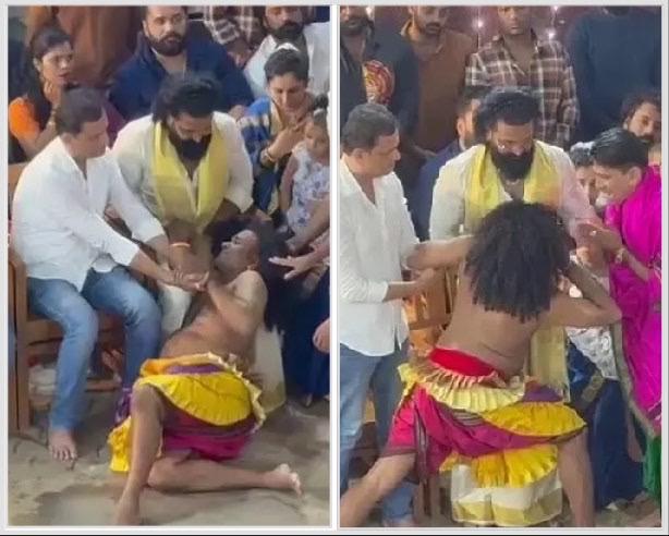A major controversy has erupted in Mangaluru after a video of a Daiva performer lying on actor-director Rishab Shetty’s lap during a ritual visit at the Kadri-Barebail Varahi Panjurli Daivasthana went viral online. The Kantara film team had recently visited the shrine to fulfill a “harake” (vow) they claimed to have made during the film’s shooting.