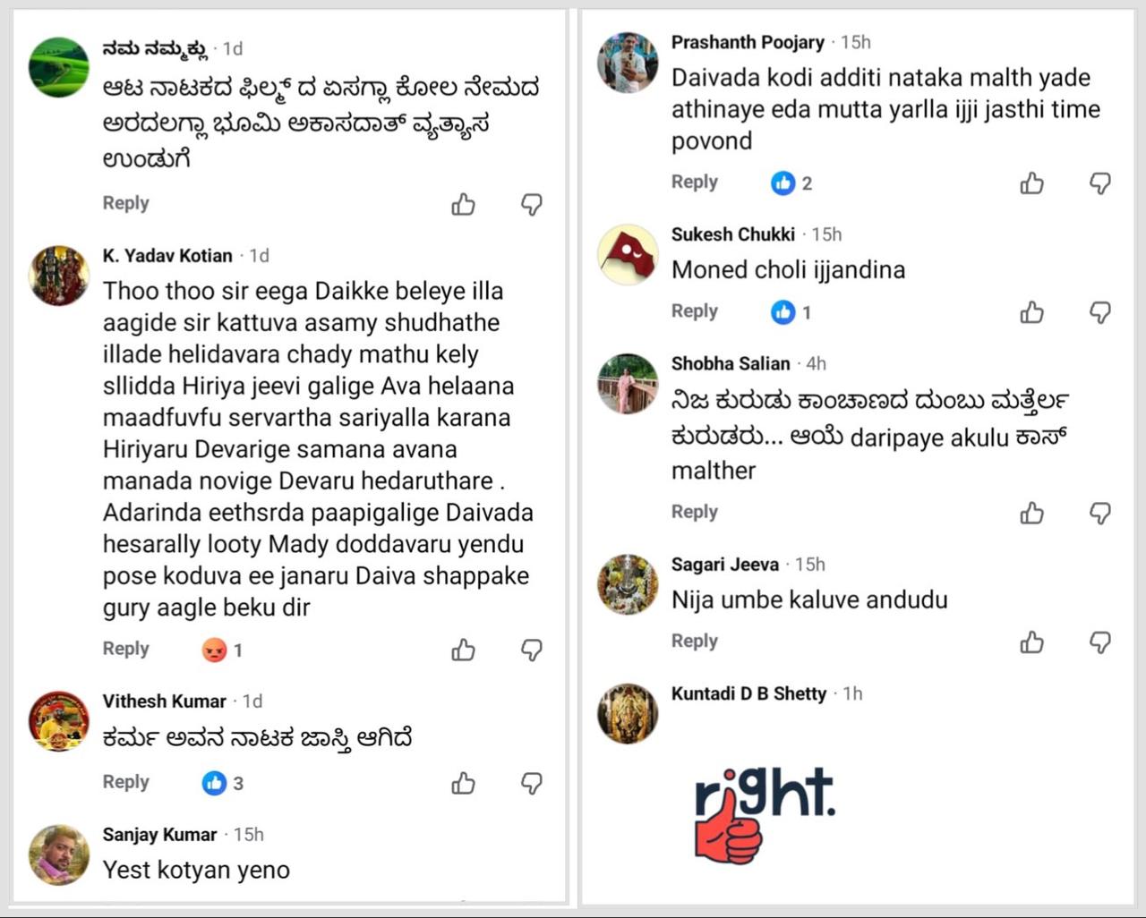 ಈ ಬಗ್ಗೆ ಮಾಧ್ಯಮಕ್ಕೆ ಪ್ರತಿಕ್ರಿಯೆ ನೀಡಿರುವ ದೈವಾರಾಧಕ ತಮ್ಮಣ್ಣ ಶೆಟ್ಟಿ, ರಿಷಬ್ ಶೆಟ್ಟಿ ಕುಂದಾಪುರದವರಾಗಿದ್ದು ತುಳುನಾಡಿನ ದೈವಾರಾಧನೆ ಬಗ್ಗೆ ತಿಳಿದಿರಲಿಕ್ಕಿಲ್ಲ. ಆದರೆ ದೈವದ ಆರಾಧನೆ ಮಾಡುವವರು ಈ ರೀತಿ ತಪ್ಪು ಮಾಡಬಾರದಿತ್ತು. ರಾಜನ್ ದೈವ ಪಂಜುರ್ಲಿ ಹೇಗಿರಬೇಕೋ ಹಾಗೆಯೇ ಇರಬೇಕು, ಬರಿಮೈಯಲ್ಲಿ ನರ್ತಿಸುವುದು, ಪಲ್ಟಿ ಹೊಡೆಯುವುದೆಲ್ಲ ಪಂಜುರ್ಲಿ ಕೋಲದಲ್ಲಿ ಇಲ್ಲ. ದೈವಾರಾಧನೆ ಕರಾವಳಿ ಜನರ ಆರಾಧನಾ ಕಲೆಯಾಗಿದ್ದು, ಇದನ್ನು ಮಾರ್ಕೆಟ್ ಮಾಡಬೇಕಿಲ್ಲ. ಅದರ ನೆಪದಲ್ಲಿ ರಿಷಬ್ ಶೆಟ್ಟಿ ಬಿಸಿನೆಸ್ ಮಾಡುವುದೂ ಬೇಕಿಲ್ಲ.