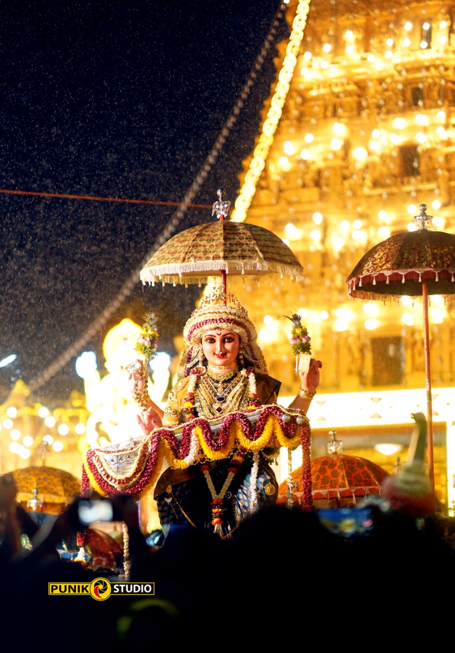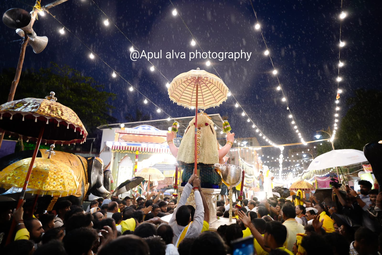 ಮಂಗಳೂರು ದಸರಾ ಎಂದೇ ಖ್ಯಾತಿ ಪಡೆದಿರುವ ಕುದ್ರೋಳಿ ಗೋಕರ್ಣನಾಥ ಕ್ಷೇತ್ರದಲ್ಲಿ 11 ದಿನಗಳಿಂದ ಪೂಜೆಗೊಂಡ ಶಾರದೆ ಮತ್ತು ನವದುರ್ಗೆಯರ ಮೃಣ್ಮಯ ಮೂರ್ತಿಗಳ ಶೋಭಾಯಾತ್ರೆ ಅದ್ದೂರಿಯಾಗಿ ನಡೆಯಿತು. ಸಂಜೆ ವೇಳೆಗೆ ಶಾರದೆ ಹೊರಡುವ ಸಮಯಕ್ಕೆ ಮಳೆಯ ಸಿಂಚನವಾದರೂ ಆಬಳಿಕ ಮಳೆ ಬಿಡುವು ನೀಡಿತ್ತು. ಇದರಿಂದಾಗಿ ಲಕ್ಷಾಂತರ ಜನರು ಉತ್ಸವಕ್ಕೆ ಸಾಕ್ಷಿಯಾದರು. ಫೋಟೊ ಜಲಕ್ ಇಲ್ಲಿದೆ.