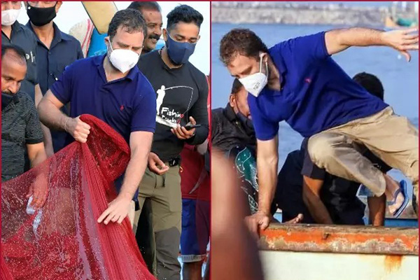 ಕೇರಳ ಪ್ರವಾಸದಲ್ಲಿರುವ ಕಾಂಗ್ರೆಸ್ ನಾಯಕ ರಾಹುಲ್ ಗಾಂಧಿ ಕೇರಳದ ಕೊಲ್ಲಂ ಜಿಲ್ಲೆಯ ಸಮುದ್ರದಲ್ಲಿ ಈಜಾಡಿರುವ ಫೋಟೋ ಮತ್ತು ವಿಡಿಯೋ ವೈರಲ್ ಆಗಿದೆ. ಮೀನುಗಾರರ ಜೊತೆ ಮಾತುಕತೆ ನಡೆಸಿದ ರಾಹುಲ್ ಗಾಂಧಿ ಮೀನುಗಾರರೊಂದಿಗೆ ಬಲೆ ಬೀಸಿ, ಮೀನು ಹಿಡಿದಿದ್ದಾರೆ. ಬಳಿಕ ಸಮುದ್ರಕ್ಕೆ ಹಾರಿ ಈಜಿದ್ದಾರೆ.