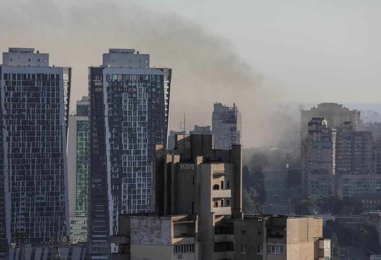 Smoke rises after a missile strike, as Russia's attack on Ukraine continues, in Kyiv, Ukraine. Firefighters work to put out a fire as smoke rises from residential building damaged by a Russian missile strike, as Russia's attack on Ukraine continues, in Kyiv, Ukraine. Smoke rises after a missile strike in Kyiv, UkraineRescue workers evacuate a person from a residential building damaged by a Russian missile strike, as Russia's attack on Ukraine continues, in Kyiv, Ukraine.