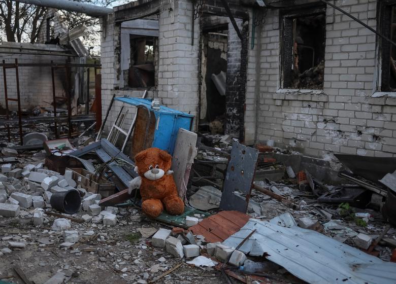 Local resident Natalia Zdorovets, 64, prepares a food near her house in the village of Kamyanka, recently liberated by Ukrainian Armed Forces, in Kharkiv region, Ukraine.
