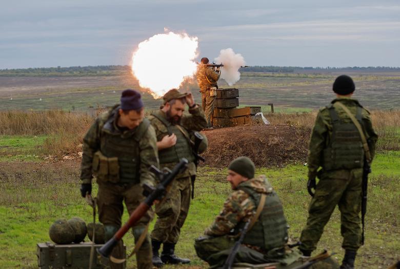 A newly-mobilised Russian reservist fires a rocket-propelled grenade (RPG) launcher during training on a range in Donetsk region, Russian-controlled Ukraine.